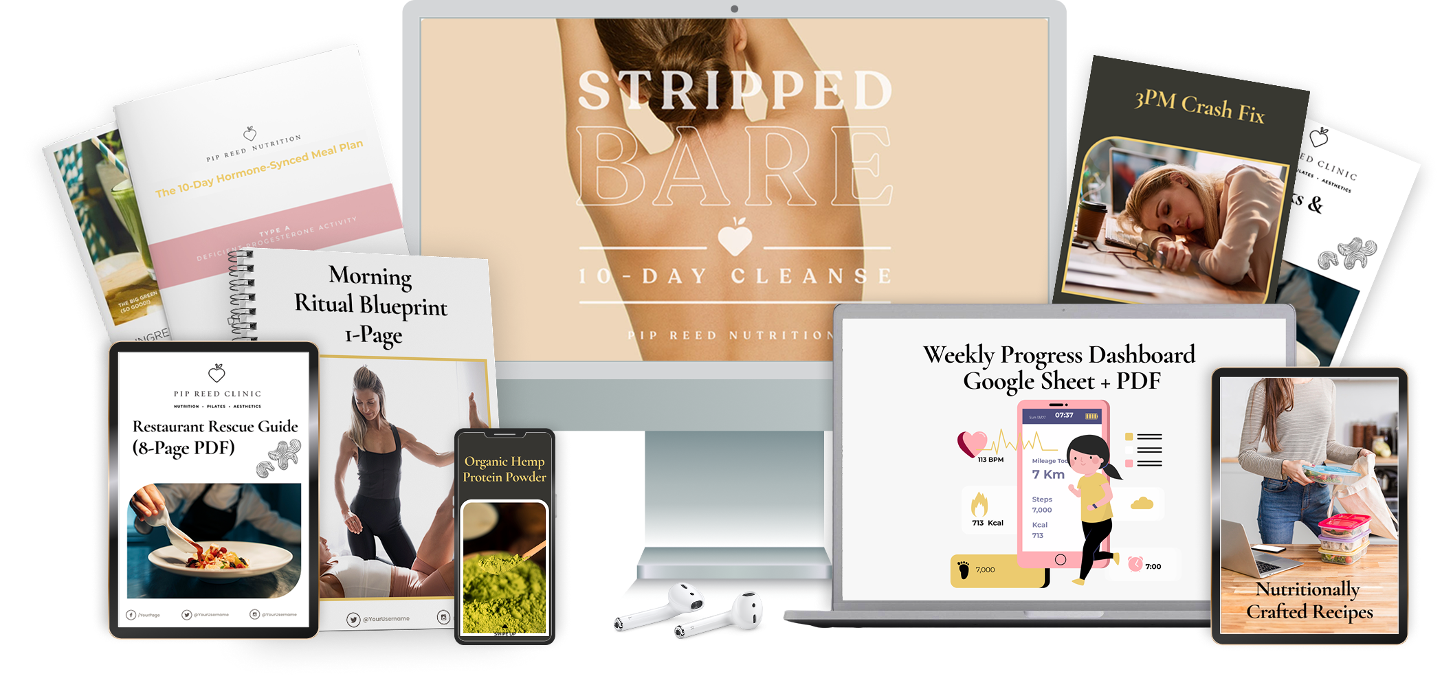 You get the complete Stripped Bare 10 Day Cleanse system: meal plan, grocery swaps, morning ritual, restaurant guide, 3pm exercise snacks and progress dashboard — instant digital access.